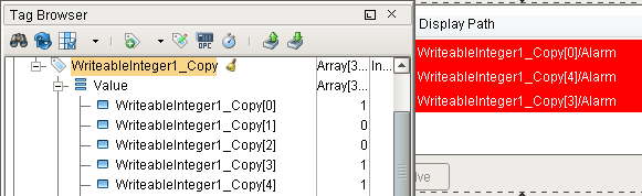 Because the core data type of each element in the array is the same, it is possible to apply Tag History, Alarming, or Scaling configurations onto the array, and these configurations will be inherited by each element.